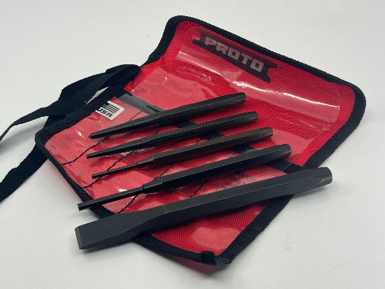 New old stock Discontinued Proto USA made 5 piece punch and cold chisel set. This premium quality set features