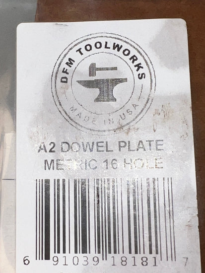 Premium quality DFM Toolworks USA Made A2 Dowel Plate Metric 16 Hole.