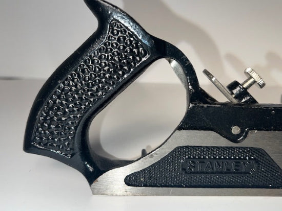 From the collection of an avid Plane collector is one never used Stanley Duplex Rabbett Plane No. 78 complete and new in the box. Included is the plane with nicker and and adjustable depth stop installed as well as fence and the rod for the fence. Original paperwork is included as well as original wax paper and protective anti -rust paper. The blade has never been sharpened. The plane has been assembled but has never cut wood. It is perfect as far as I can see. The box has the original yellow and black paper label marked Stanley Contractor Grade Duplex Rabbett Plane 12-978. The blade is marked STANLEY Made in England. A very beautiful tool !