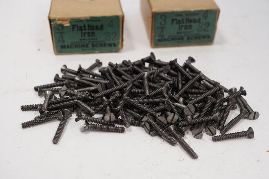288 New Old Stock USA Made #4-32 x 3/4" Slotted Flat Head Iron Machine Screws. I am told these screws were produced back in the 30's to 40's. Please have a look. Hard to find vintage iron !