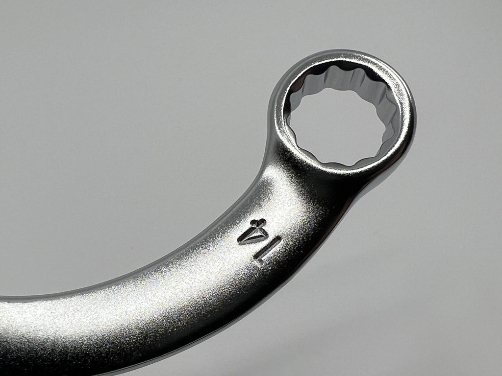 The half-moon shape allows to manoeuvre nuts inaccessible with a standard straight wrench