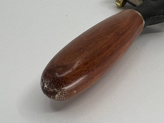 Pristine VERITAS Tools Canada Round Spokeshave made in 2003 . This spokeshave came from the collection of an avid collector and occasional fine woodworker. It is excellent but it may have been used a a few times  . It comes in the original box with original paperwork. The lacquer on one handle has started to peel on its end otherwise as best I can tell it is excellent. The blade appears to have never been sharpened. The part number is 05P33.03 . The handles on this early model spokeshave are exotic wood ( either bubunga or padauk...not sure which) while current models have torrified maple handles.